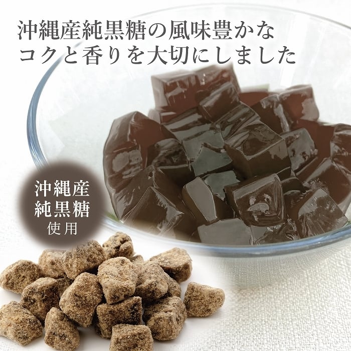 沖縄産純黒糖の風味豊なコクと香りを大切にした、さいの目サイズノーですゼリーです。